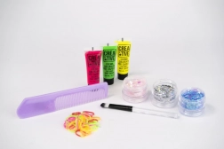 Ravviva le acconciature con il set creativo per piccole stylist! Include 3 gel colorati, 3 glitter in polvere, elastici, pennellino e pettine per un’applicazione facile e la creazione di look originali.