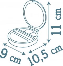 - Un elegante portapolvere con illuminante, ombretti e pennellino,