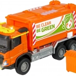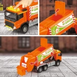 Il modello in scala 1:43 dispone di un cestello di sollevamento funzionante, di un portello apribile e della funzione di ribaltamento per svuotare facilmente i rifiuti. Gli pneumatici in gomma con battistrada si adattano a varie superfici e i 2 effetti sonori insieme ai fari anteriori e ai fendinebbia aggiungono autenticità al gioco. Incluse anche le batterie 2× AAA (R03), per iniziare subito a divertirsi.