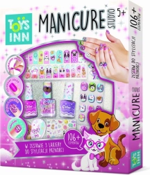 Il set include 3 smalti per unghie, tip per unghie, adesivi per unghie, 2 lime, un foglio di adesivi e un anello.