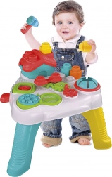 Il tavolo offre un'ampia gamma di attività per sviluppare le abilità motorie dei bambini, come ingranaggi, catapulta per blocchi e bolle scoppiettanti.