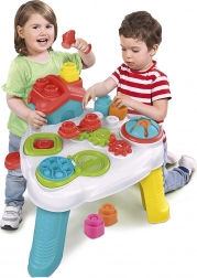 Tutte le parti del tavolo sono realizzate con materiali atossici e resistenti, sicuri per i bambini piccoli. I cubi sono morbidi e lavabili.