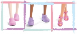 Sneakers o sandali rosa e viola aggiungono grinta a ogni outfit e sottolineano lo stile fashion della bambola.