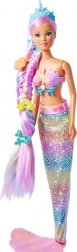 Scopri un mondo incantato con la bambola Steffi Love come sirena. Ha lunghi capelli multicolore per acconciature creative, una coda arcobaleno scintillante e accessori alla moda tra cui pettine, mollettine e una tiara reale. La coda si rimuove facilmente, così i bambini possono giocare sia con una bambola normale sia con una sirena. Adatta ai bambini dai 3 anni in su.