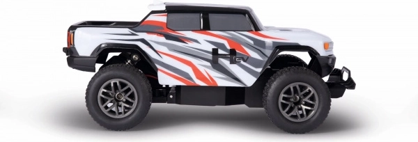 Grazie alla tecnologia 2,4 GHz puoi guidare senza interferenze insieme ad altri modelli. L’auto è in configurazione RTR – nella confezione trovi auto, radiocomando, batteria e caricatore USB. Basta aprire e partire. La carrozzeria leggera di qualità con il design distintivo GMC HUMMER EV conferisce al modello un look autentico e robustezza.