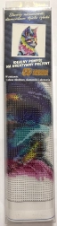 - Tela con motivo prestampato, penna applicatrice, vaschetta, cera, set di strass colorati, legenda dei simboli