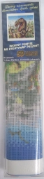 Nella confezione trovi un kit completo: tela con disegno prestampato e strato adesivo, penna applicatrice, vaschetta, cera e set di diamantini colorati. Per lavorare al meglio si consiglia di scoprire la pellicola protettiva della tela solo a sezioni, così l’adesivo rimane pulito e i diamantini aderiscono correttamente.