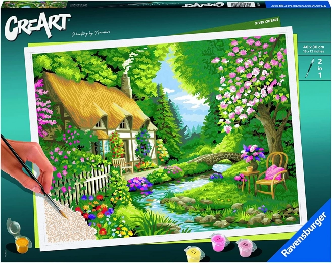 Il set CreArt include tutto ciò di cui hai bisogno per dipingere, anche senza esperienza, un quadro suggestivo con il tema di una tranquilla casetta sul fiume. Grazie ai confini stampati a colori al posto dei contorni neri, i bordi e le sfumature appariranno più naturali e il quadro finale avrà un aspetto ancora più professionale.