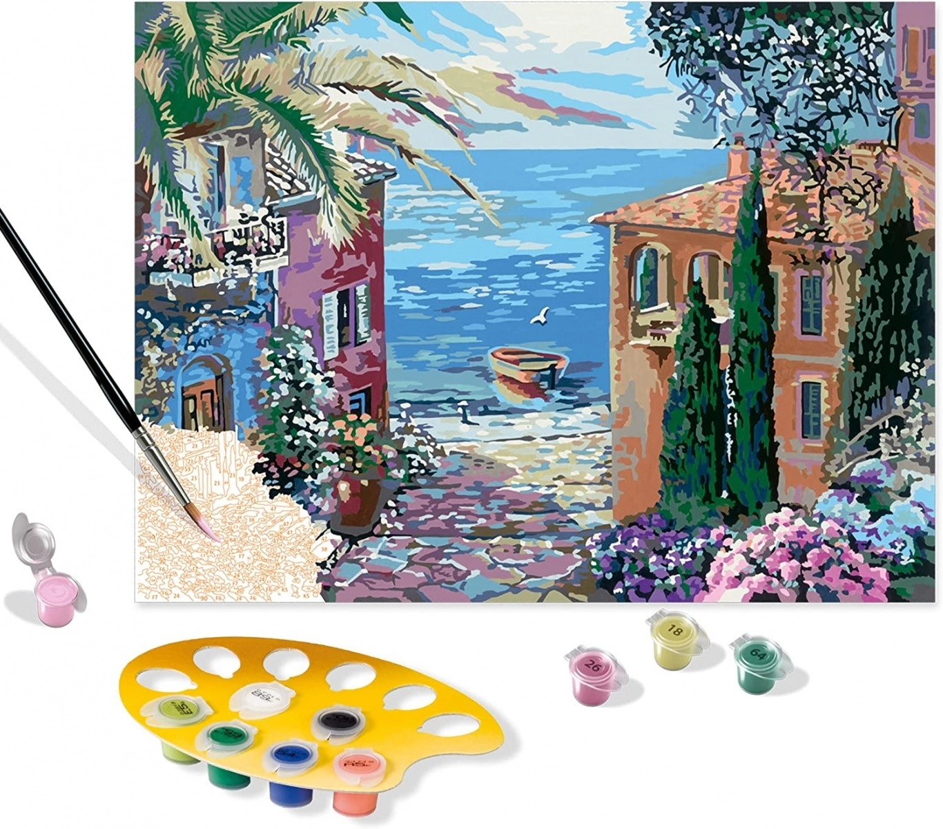 Scopri la quieta bellezza del Mediterraneo con un quadro della linea CreArt Premium Series B. Questo motivo lavorato nei dettagli è ideale per giovani creativi e adulti dai 12 anni in su. Grazie alle sue dimensioni risalta perfettamente negli interni e aggiunge eleganza artistica, colori vivaci e affascinanti dettagli del paesaggio.