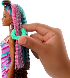 Lascia che i bambini scoprano il mondo della moda e delle acconciature con Barbie Totally Hair, ispirata al modello cult degli anni ’90. La bambola ha capelli super lunghi e increspati con striature rosa e turchesi e indossa un abito aderente con stampa di farfalle. Grazie al set variegato di accessori, lo styling è divertente e facile.
