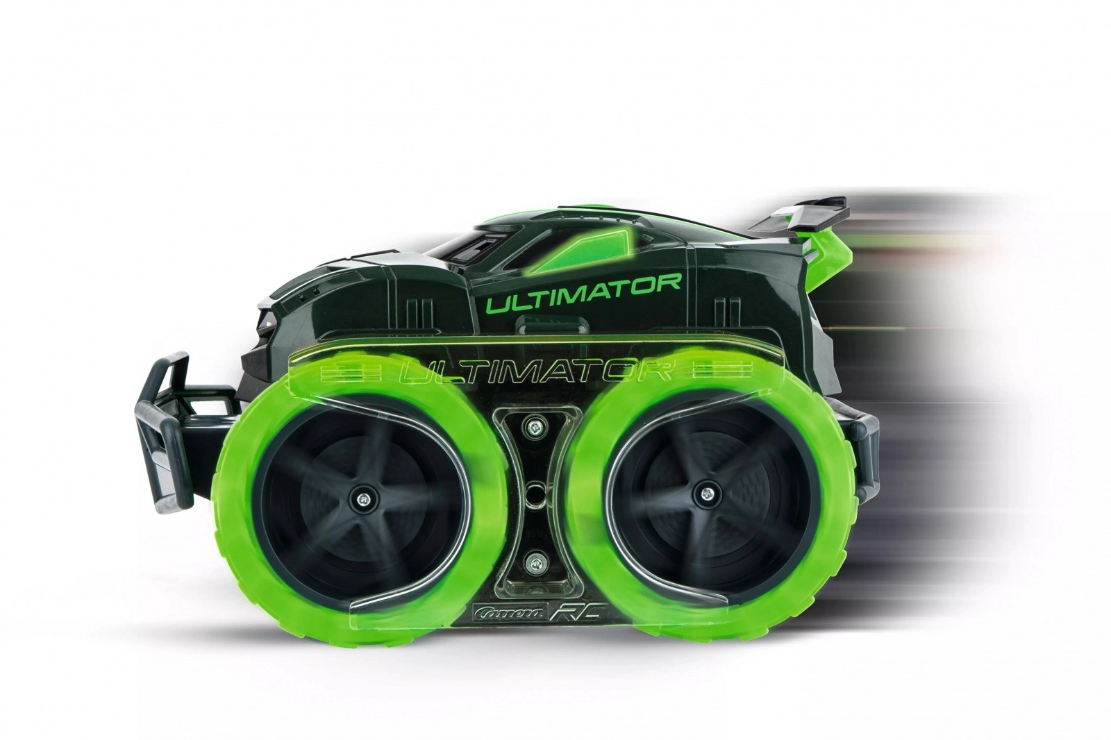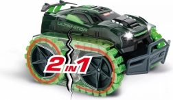 Con l’auto RC Carrera ULTIMATOR 2 in 1 affronterai senza problemi colline e vallate! Indipendentemente dal tipo di superficie che ti aspetta oggi nella tua avventura, con l’Ultimator sei ben preparato per qualsiasi terreno. Premendo un pulsante sul radiocomando passi dalla trazione a ruote alla trazione a cingoli e superi ogni ostacolo sulla pista. Se vuoi andare un po’ più veloce, puoi tornare facilmente alla trazione a ruote con un semplice tocco del pulsante. Anche dopo la pioggia sei pronto all’azione: la protezione dagli spruzzi d’acqua difende l’Ultimator dall’umidità.
