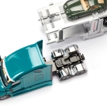 Questo modello è adatto sia al gioco che all’esposizione, e il suo design distintivo nella tonalità Miami Blue con elementi cromati è davvero accattivante. Grazie al telaio a tre assi e al gancio standard integrato, il modello può essere combinato con tutti i rimorchi della serie Siku Super.