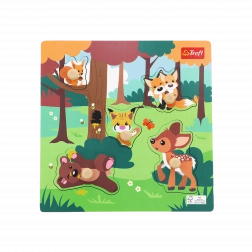 Il puzzle in legno con grafica colorata degli animali del bosco è progettato per divertire i bambini e al contempo svilupparne le abilità. Ogni pezzo è robusto, facile da afferrare e dotato di un pomello in legno per una facile rimozione. La base presenta sagome fresate con un’immagine in bianco e nero corrispondente al pezzo, aiutando i bambini a un abbinamento intuitivo.
