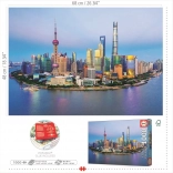 Educa Puzzle Panorama ti porta nel cuore di Shanghai durante un tramonto incantevole. Questa splendida veduta è composta da 1000 pezzi di alta qualità che si adattano perfettamente e garantiscono ore di divertimento eccezionale.