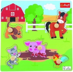 Scopri un gioco divertente ed educativo per i più piccoli: puzzle in legno a tema fattoria con cinque pezzi dotati di pomelli. Legno resistente, presa facile e immagini vivaci favoriscono le prime abilità del bambino e la gioia di comporre.