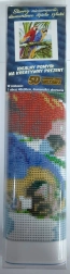 - Tela con motivo prestampato, penna applicatrice, vassoio, cera, set di pietrine colorate, legenda dei simboli