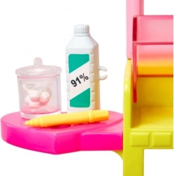La postazione per il piercing alle orecchie offre spazio per esporre gli orecchini e conservare gli accessori della bambola, insieme a una sedia per i clienti. Altri accessori includono soluzione disinfettante, batuffoli di cotone, badge identificativo, penna per le orecchie e 2 collane, che arricchiscono il gioco. Questa trasformazione unica può essere ripetuta a volontà, rendendo questo set con la bambola Skipper un regalo ideale per i bambini dai 3 anni in su.