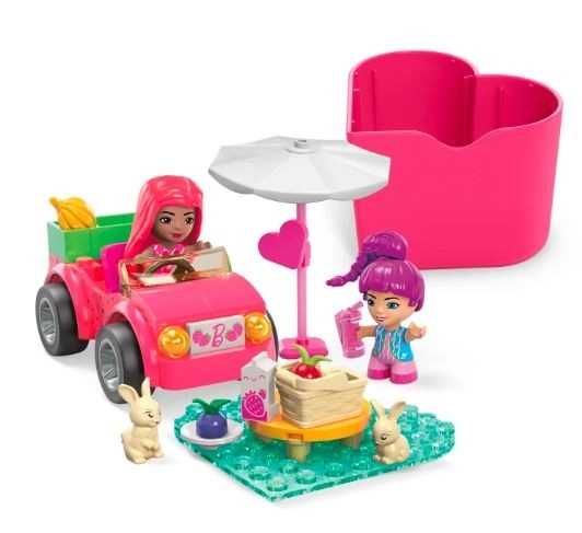 Il set MEGA Barbie Color Reveal offre divertimento pieno di mistero e fantasia. Ogni micro-bambolina ha un look nascosto tutto da svelare, accompagnato da sorprese profumate. Costruisci l’elegante cabriolet rosa, fai accomodare le bamboline e goditi un magico picnic con due dolcissimi coniglietti.
