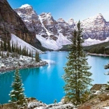 Un avvincente panorama invernale di un lago turchese e cime innevate porta nella vostra casa la serenità e la bellezza della natura.
