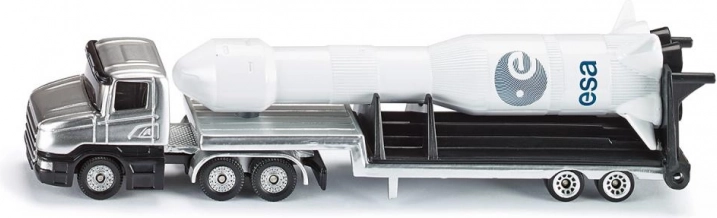 Questo modello accuratamente realizzato del trattore con pianale di trasporto e razzo si distingue per i dettagli realistici tipici del marchio Siku. Il corpo in metallo combinato con accessori in plastica assicura durata e sicurezza durante il gioco. Il razzo può essere rimosso dal telaio e, grazie al supporto stabile, è facile “prepararlo al lancio”, favorendo la narrazione creativa.