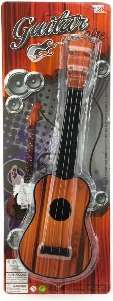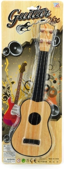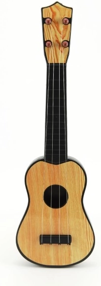 Chitarra di plastica per bambini lunga 40 cm, ideale come primo strumento musicale per i piccoli musicisti. Aiuta a sviluppare motricità fine, coordinazione dei movimenti e senso del ritmo. Disponibile in due finiture che imitano il legno chiaro o scuro. Adatta dai 3 anni in su.