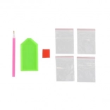 Nella scatola troverete una tela con l'immagine prestampata, una penna per applicare i cristalli, una vaschetta per i cristalli, cera e un set di cristalli colorati.