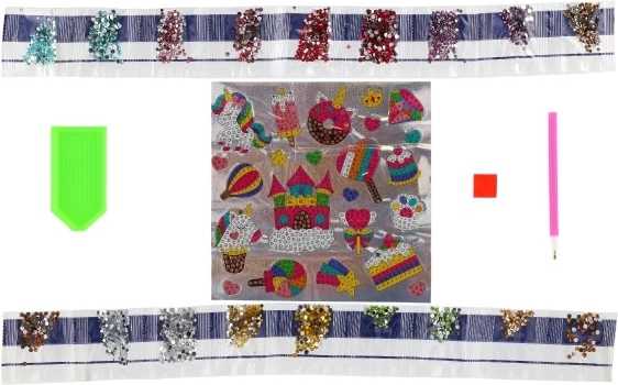 Scopri il divertimento con il nostro set Pittura di Diamanti Unicorni e Dolci. Questo set contiene tutto il necessario per creare splendidi adesivi decorati con pietre scintillanti. Il set è ideale per chi ama le attività creative e le decorazioni brillanti.