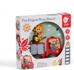 Il pannello attività in legno 6 in 1 a tema vigili del fuoco di CLASSIC WORLD sviluppa le abilità dei bambini dai 12 mesi. Offre sportellini apribili, labirinto di perline, ruota girevole, scala, campanello e manopola rotante. Realizzato in legno di qualità e colorato con vernici atossiche per un apprendimento sicuro giocando.