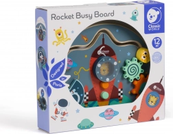 La tavola manipolativa in legno a forma di razzo di CLASSIC WORLD offre 6 in 1 attività divertenti per bambini da 12 mesi: labirinto, perline, ruota girevole, pulsanti, elemento magnetico e manopole girevoli. Supporta la motricità fine, la coordinazione occhio–mano e la creatività, è realizzata in legno di qualità e colorata con vernici atossiche.