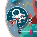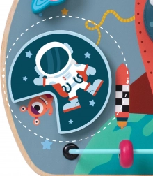 Scoprite un universo di giochi con la tavola manipolativa in legno a forma di razzo. Il bambino allena la presa, la precisione e la concentrazione mentre gira le ruote, sposta le perline o risolve un semplice labirinto. La lavorazione sicura, le vernici atossiche e i materiali resistenti garantiscono un divertimento lungo e sicuro.