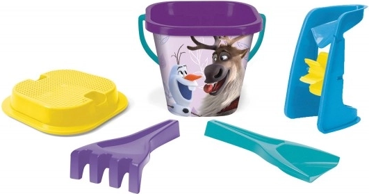 Divertente set per la sabbiera con il popolare tema FROZEN (Il regno di ghiaccio), perfetto per piccoli costruttori dai 12 mesi. Include secchiello, paletta, rastrellino, setaccio e mulino per giochi infiniti con la sabbia. Le dimensioni compatte garantiscono facile trasporto e riponimento.