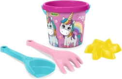 Evviva la sabbiera! Questo set da sabbia di qualità del marchio Wader offre ai bambini dai 12 mesi un divertimento senza fine. Nella confezione trovi un secchiello, una paletta, un rastrellino e una formina – tutto in plastica resistente, ideale per la spiaggia e la sabbiera. I motivi colorati con pirati o unicorni stimolano la creatività e lo sviluppo della motricità fine.