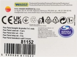 Set da sabbia per bambini con tema PAW Patrol porta tanto divertimento nel sandbox, in spiaggia e in giardino. Include un secchiello ca. 12 cm, una paletta, un rastrello e 2 formine. Plastica leggera e resistente, confezionato in rete per un facile trasporto.