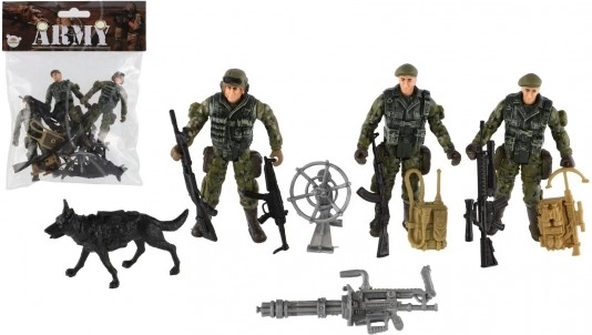 La confezione contiene tre soldati, un cane e altri accessori tattici per un'esperienza di gioco completa.