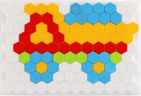 Immergiti nel mondo dei colori e delle forme con questo set di mosaici. La base è bianca e ricorda i favi d'api, su cui si possono posizionare pezzi di plastica colorati. Il mosaico supporta creatività, abilità spaziali e lo sviluppo della fine motricità dei bambini.