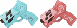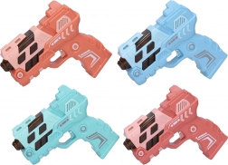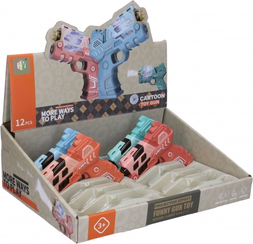 Divertente pistola per bambini lunga 12 cm con effetti luminosi e sonori e proiezione di immagini per un divertimento ancora maggiore. Disponibile in 4 varianti di colore (blu, verde, arancione, rosa). Alimentazione a 2× AAA, batterie non incluse.