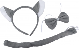- Cerchietto con orecchie, fiocchetto per il collo, coda