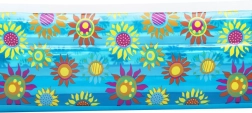 La piscina gonfiabile è decorata con un vivace motivo floreale, che ne aumenta l'attrattiva e invita al gioco e al relax.