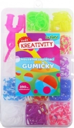 Crea i tuoi braccialetti originali con questo set completo di elastici! Nella confezione trovi 390 elastici colorati, uncinetti per intrecciare, clip di chiusura e un telaio per la tessitura in una pratica scatola. Un’ottima attività creativa per bambini e adulti e un accessorio da abbinare a qualsiasi outfit.