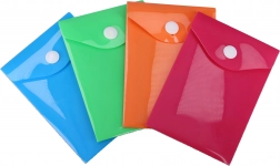 Pratica cartellina con bottone a pressione dalle dimensioni 11,5 × 8 cm, mantiene in ordine piccoli documenti e materiali scolastici o d’ufficio. È realizzata in plastica morbida, è facile da pulire e grazie alla chiusura a pressione protegge in modo sicuro il contenuto da cadute e sporco.