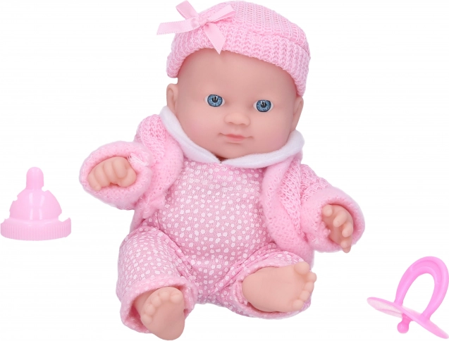Presentiamo una bambola neonata di 20 cm, ideale per tutte le piccole mamme. Questo set include: