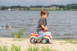 Inoltre, c'è uno spazio di archiviazione sotto il sedile, dove i bambini possono nascondere i loro piccoli tesori. Il design complessivo del minivan conferisce al giocattolo un fascino retrò che delizierà ogni piccolo appassionato.