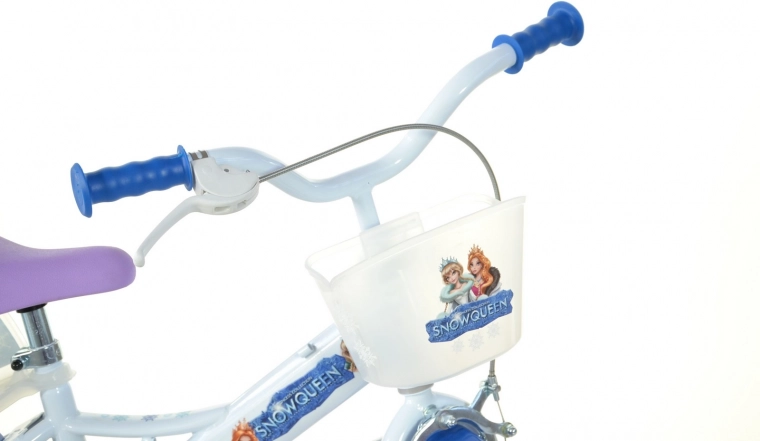Bicicletta per bambini 12" leggera e stabile di Dino Bikes nello stile della Regina delle Nevi colpisce per la ricca dotazione e la costruzione sicura. È dotata di pneumatici pieni senza rischio di foratura, freno anteriore e trasmissione fissa (pedalata continua) per partenze agevoli. Non mancano le rotelle di supporto, il cestino e il seggiolino per bambola. Ideale per bambini con altezza 87–110 cm, peso 6,5 kg, portata 40 kg.