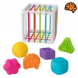 Inserire ed estrarre i blocchi attraverso le pareti elastiche del cubo è un grande divertimento e un'esperienza sensoriale.