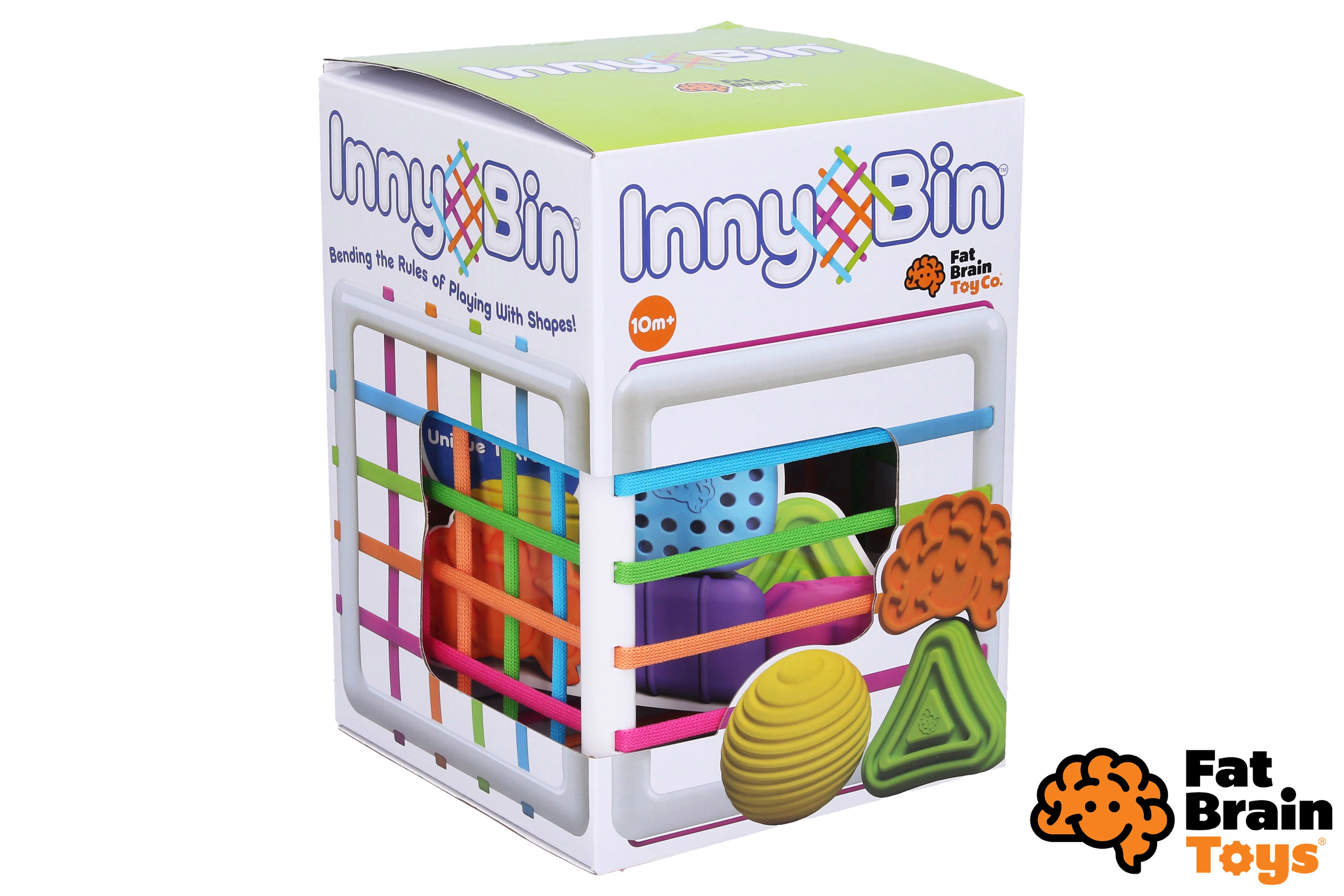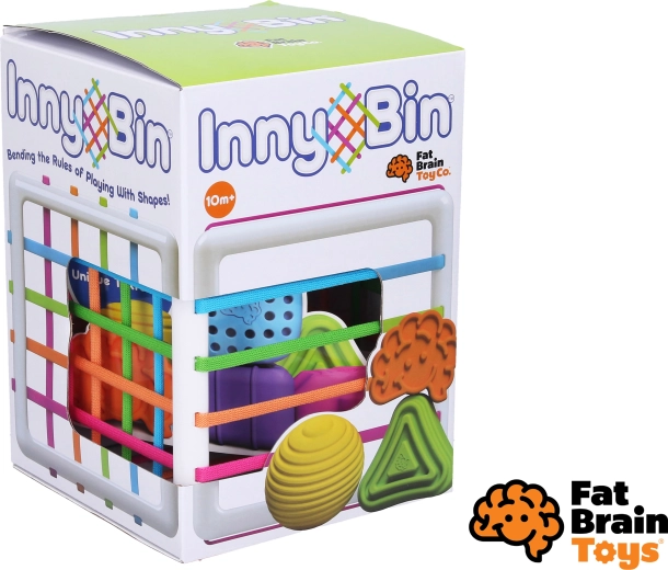 InnyBin di FAT BRAIN è un inseritore moderno che trasforma il classico gioco di classificazione delle forme in un’attività sensoriale interattiva. I bambini possono schiacciare, afferrare, inserire ed estrarre le forme attraverso le corde elastiche colorate, senza dover centrare esattamente un foro. Questo sviluppa l’abilità delle dita, la pazienza e la naturale curiosità.