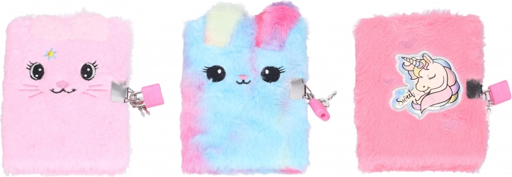Conserva ricordi e idee in un diario elegante che protegge la tua privacy grazie al pratico lucchetto. Il piacevole rivestimento in peluche lo rende un accessorio di stile, gradevole al tatto e alla vista.