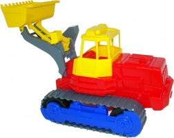Questo caricatore cingolato in plastica è ideale per giocare sulla sabbia e in casa. Grazie ai cingoli stabili affronta terreni irregolari e la grande benna facilita il carico di sabbia o mattoncini. Il giocattolo è progettato pensando alla sicurezza dei più piccoli e resiste anche a un uso intensivo.