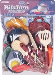 Scopri il set da cucina completo per bambini che offre tutto il necessario per preparare deliziose bontà giocando. Include un fornello per bambini, pratiche stoviglie e sicuri alimenti in plastica, grazie ai quali i piccoli possono cimentarsi nel ruolo di cuoco nella cucina di casa.