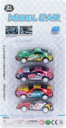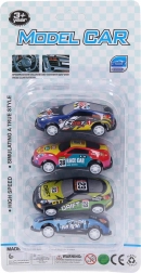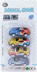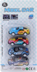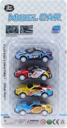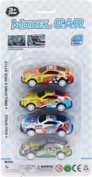 Scopri il divertimento con il nostro set di quattro macchinine, ciascuna di dimensione 6,5 cm, che si muovono su ruote libere.