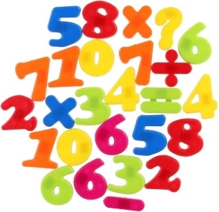 Crea esempi matematici divertenti con queste cifre e simboli magnetici colorati. Aiutano i bambini nell'acquisire le competenze matematiche di base.
